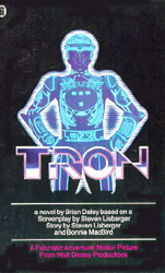 Tron, a novelization of the Disney movie.  If you had trouble following the action in this ahead-of-its-time movie, the novel will be the guide you need.
